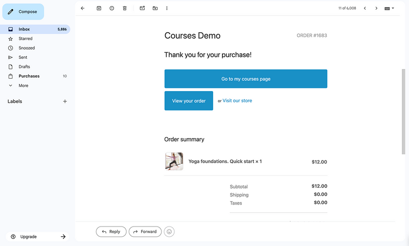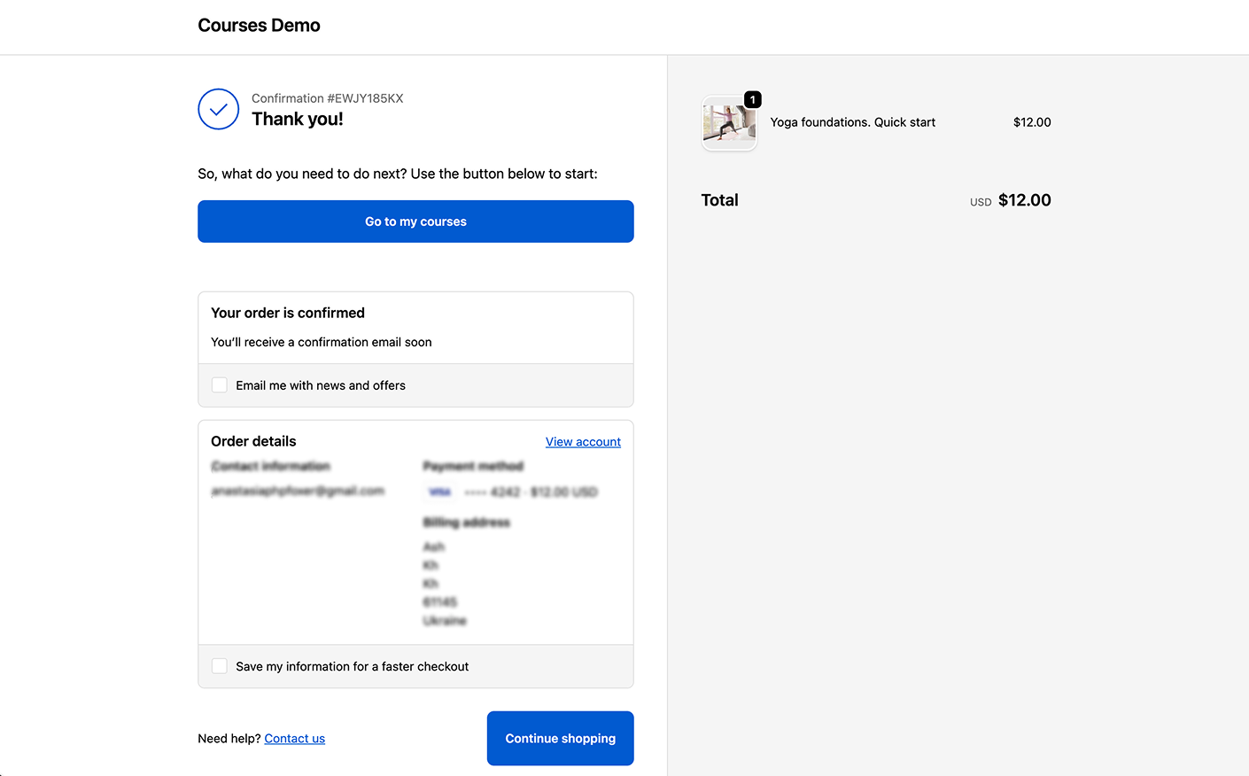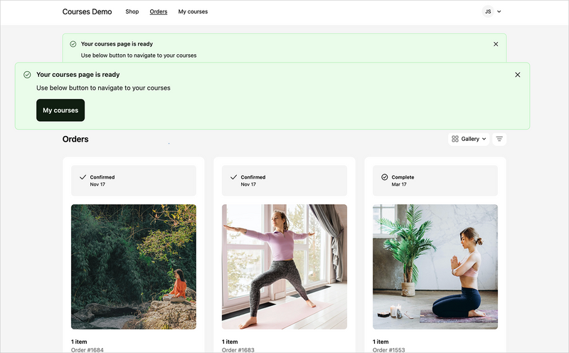 - 2 They get the “Go to my courses” button on the order status page + in email.