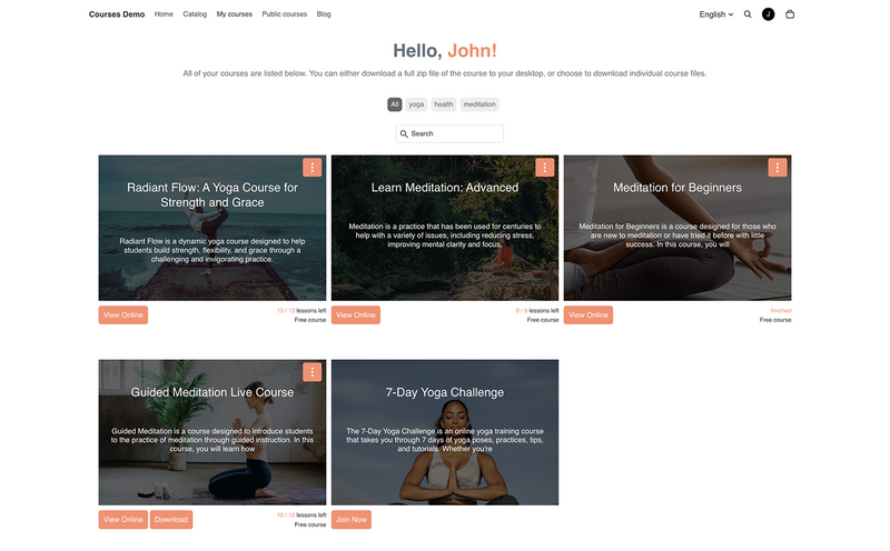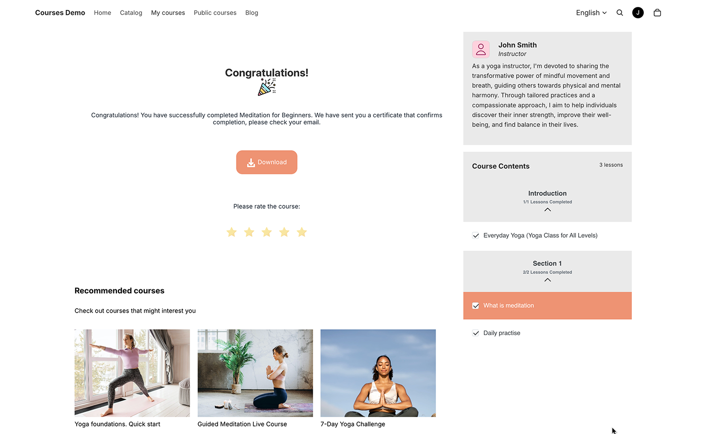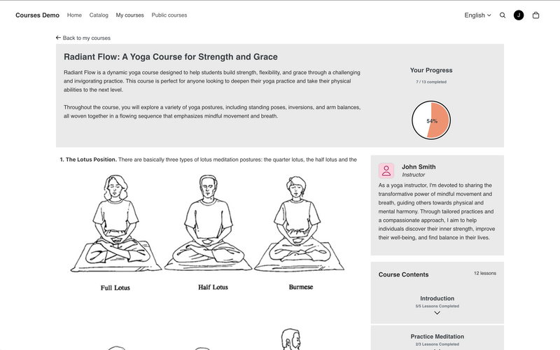 Quick demo of the full customer experience — from buying a course to accessing the My courses page and starting lessons.